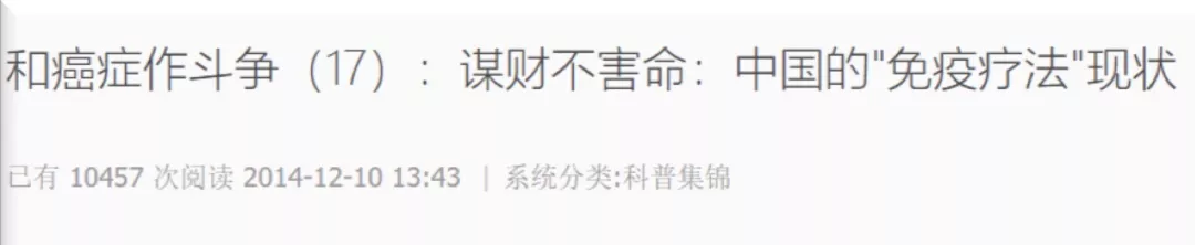 這件事情對(duì)很多人來說很憤怒,很痛苦,但對(duì)我來說很遺憾。為什么很遺憾,因?yàn)樵谖簞t西事件發(fā)生一年半以前,我就已經(jīng)寫過科普文章說明他接受的這種療法是無效的,當(dāng)時(shí)我用的標(biāo)題是《謀財(cái)不害命,中國的免疫療法現(xiàn)狀》。